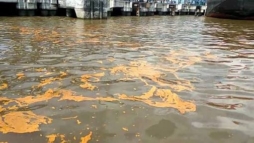 Pasalnya tongkang yang bernama Teratai Merah III pengangkut CPO itu sedang bongkar ke tangki timbun milik PT Nagamas Palmoil Lestari sehingga meluber kemana-kemana dan tampak jelas di permukaan air laut, Jumat (10/8/18) sekiranya pukul 23.10 malam lalu.