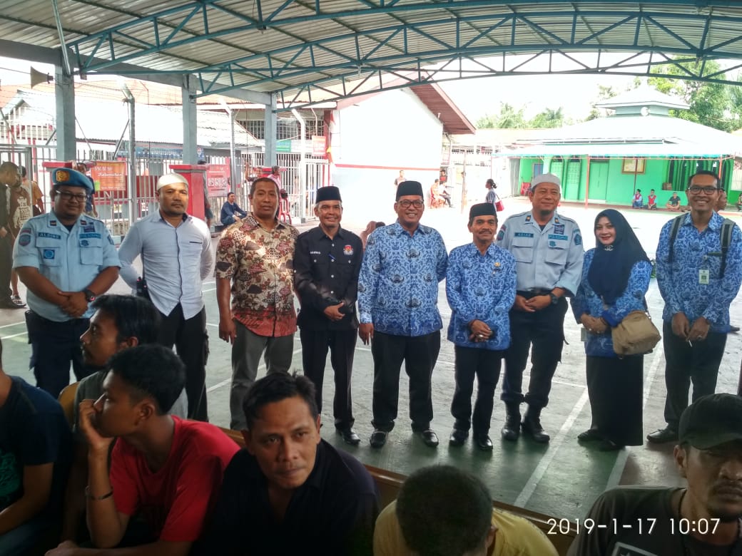 | Kadisdukcapil Suardi bersama tim jajarannya saat melakukan perekaman KTPel bagi para warga binaan |