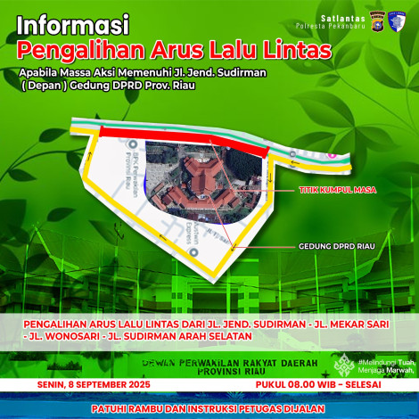 Selain itu, polisi juga menyediakan kantong parkir untuk peserta aksi di DPRD Riau. Yakni Lapangan Purna MTQ Riau dan halaman Taman Budaya, Jalan Sudirman.