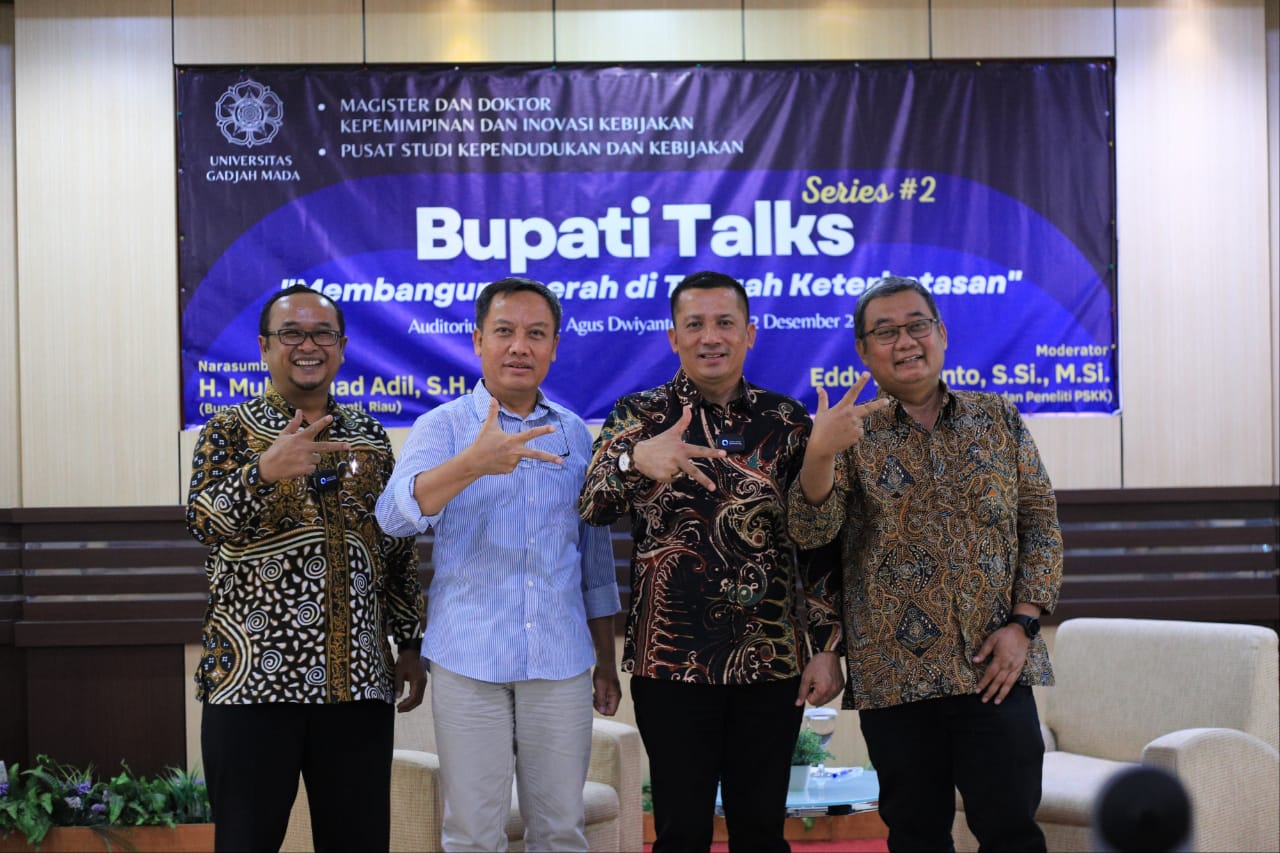 Teleskopnews.com, Kepulauan Meranti – Bupati Kepulauan Meranti H. Muhammad Adil, SH, MM didaulat menjadi narasumber dalam Bupati Talk Seri 2 yang dilaksanakan Program Studi Magister dan Doktor Kepemimpinan dan Inovasi Kebijakan Sekolah Pascasarjana bekerja sama dengan Pusat Studi Kependudukan dan Kebijakan Universitas Gadjah Mada (UGM).