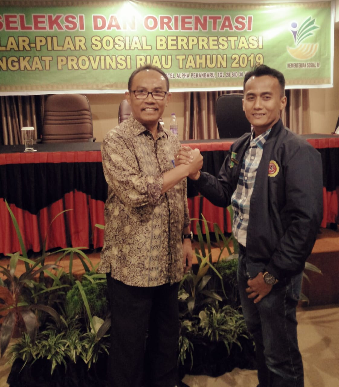 | Foto: Deky Indrawan Ketua Karang Taruna Kel.Bintan Bersama Kepala Dinas Sosial Provinsi Riau , Drs.H Darius Husin,MM dalam Seleksi Pilar- Pilar Sosial Berprestasi Tahun 2019 |