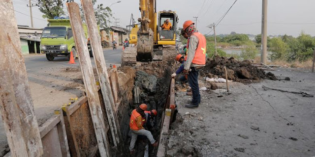 | Ilustrasi pengerjaan penggalian pemasangan pipa gas milik PT PGN.(Kompas) |