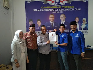 Sebelumnya, dihari yang sama rombongan Beben mengembalikan berkas pendaftaran ke DPD Partai Amanat Nasional (PAN) Kota Dumau yang diterima langsung oleh ketua penjaringan H. Syaprzal Nurdin didampingi sekretaris Toni Koto.(Arif)