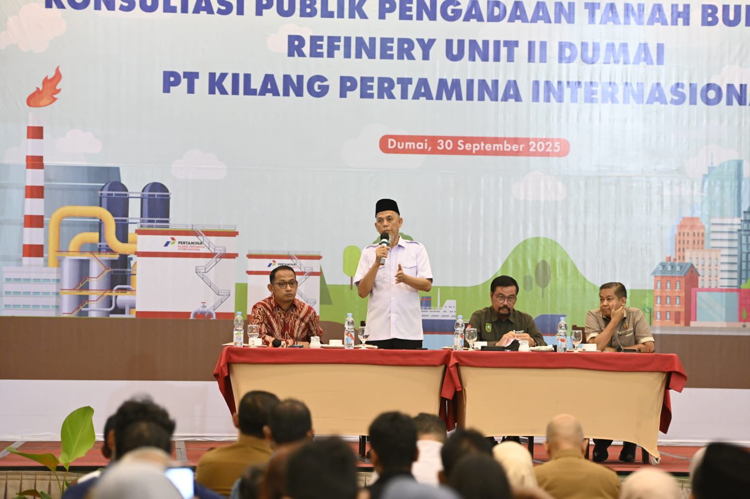DUMAI – Konsultasi Publik Pengadaan Tanah Bufferzone Refinery Unit II Dumai PT. Kilang Pertamina Internasional yang diikuti oleh ratusan masyarakat yang memiliki lahan maupun bangunan pada area yang akan dilaksanakan pengadaan tanah, Selasa,(30/9/2025).