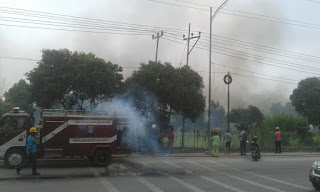 | Tampak Asap membumbung tinggi yang berasal dari laham yang terbakar |