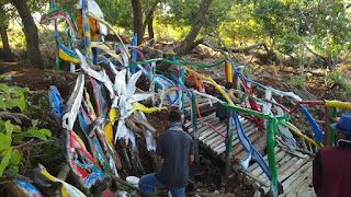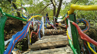 Lanjut Muhayat lagi, dengan menggunakan bahan bahan seadanya seperti puing puing kayu yang ada dipantai ini kami pergunakan untuk membuat Objek Wisata, kita cat dan kita susun berdasarkan ide ide dari pemuda Desa Simpang Ayam ini,yang jelas tema nya ceria.