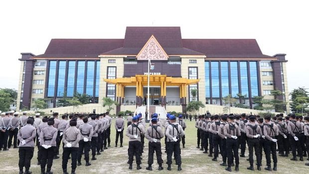 Polda Riau menggelar upacara peringatan Hari Pahlawan. Upacara dipimpin Irwasda Polda Riau Kombes Prabowo Santoso, Senin (10/11/2025). Foto: dok. Polda Riau