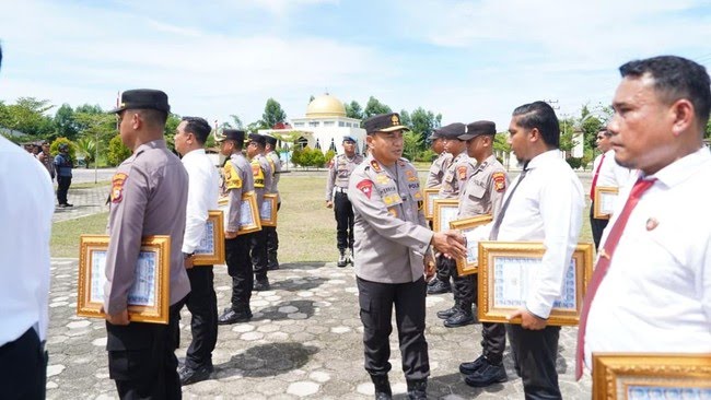 MERANTI - Kapolda Riau Irjen Pol Herry Heryawan memberikan penghargaan kepada personel Satrenarkoba Polres Kepulauan Meranti yang berhasil mengungkap 30…